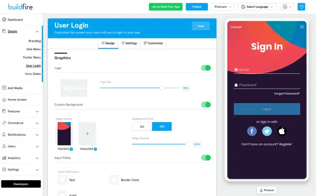 BuildFire是最可靠的应用建设者市场中的领先平台。使用这个可靠的应用程序构建平台,你可以发布你的应用程序,让你的客户访问。近年来,BuildFire因其直观的界面、快速的应用开发和多种定制选项而获得了大量的欢迎。