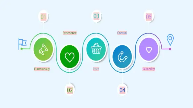 应用程序的功能有一个重要的作用。你分析你的平台是否解决了客户的问题或使其变得更糟。你可能会发现一个平台或游戏商店可以解决你的问题,但你必须做很多额外的工作来获得解决方案。这不是获得消费者的理想方式,而且很可能,你会失去消费者。