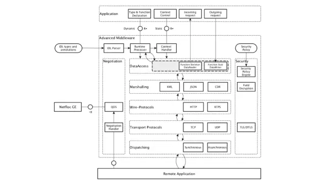 将多个方面联系在一起的软件胶水是内部middleware 接口。middleware 软件组件使用内部接口来保持与他们特定协议的一致性。