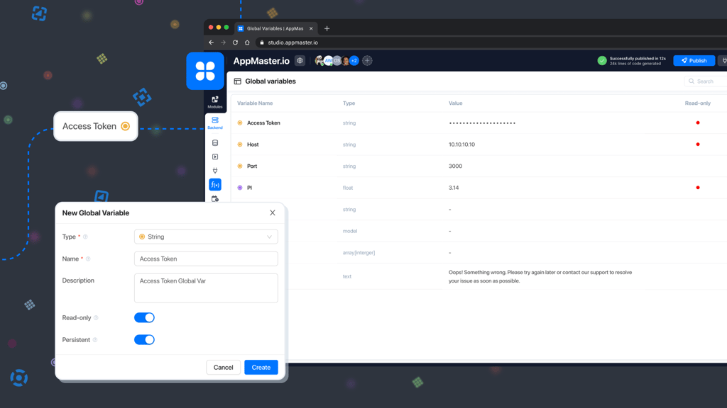 AppMaster中的全局变量允许你在RAM中存储数据,这大大加快了你对应用程序的工作。