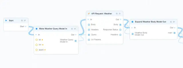 3.在设置任务调度器之前,你需要创建一个业务流程,它将通过API接收天气信息。该业务流程看起来如下。