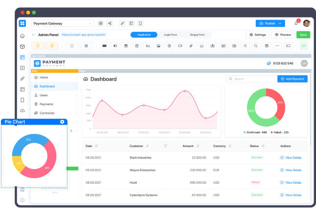 Build flexible web applications like admin panels and customer portals driven common backend. Quickly and without code.